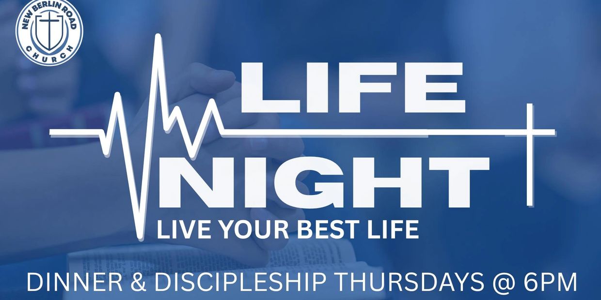 LIFE GROUP for ages 45 and under meets Thursday nights at 6:30 PM.